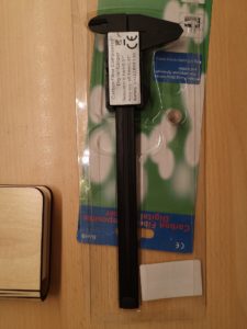 Der Messschieber wird in einer Blisterverpackung geliefert, wo sich außer dem Messschieber nur noch eine Ersatzbatterie befindet.