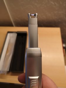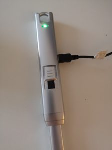 Um das Feuerzeug nutzen zu können, sollte man es am besten zuerst einmal aufladen. Während des Ladevorgangs leuchtet die LED des Feuerzeuges grün. Wenn der Ladevorgang beendet ist, erlischt die LED. Dann über einen Schieberegler den man nach oben schiebt werden die Elektroden nach oben geschoben und das Feuerzeug ist entsichert. Dadurch erscheint der Auslöseknopf um das Feuerzeug zu aktivieren. Nun erscheint ein kleiner Lichtbogen und man kann seine Kerzen oder was man auch immer entzünden will entzünden.