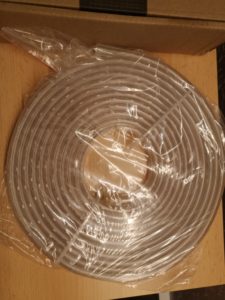 Das LED-Band ist ca. 5m lang und wird aufgerollt geliefert. Von der Beschaffenheit soll es Wasserdicht nach IP65 sein. Dies gilt allerdings nicht für das Netzteil und sollte dementsprechend bei der Anwendung bedacht werden.
