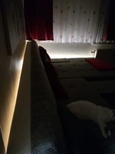 Nach der Montage muss ich sagen, dass ich sehr begeistert bin. Das LED-Band leuchtet sehr schön und ist weder zu hell noch zu dunkel. Man kann das LED-Band über den Bewegungsmelder steuern, über den Ein- und Ausschalter am Netzstecker oder wie in meinem Fall über eine Wlan-Steckdose, so dass ich das LED-Band über Sprachsteuerung bzw. APP steuern kann.