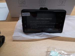 Geliefert wird die Dashcam mit allem was man zum Montieren und zum Betreiben braucht, sowie eine kleine Anleitung die einem das Grundwissen mitteilt. Die Dashcam ist hochwertig verarbeitet und sieht aus wie ein kleiner Fotoapparat. Sehr schön ist auch der kleine Monitor auf der Rückseite, wo man nicht nur die Einstellungen des Menüs einstellen kann, sondern sich auch die aufgezeichneten Aufnahmen anschaut.