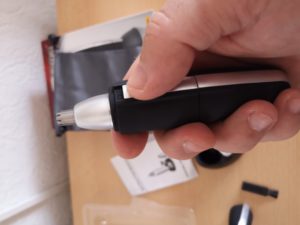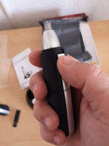 Mein alter Nasenhaarschneider fiel mir auf dem Boden im Badezimmer. Aus diesem Grund musste ein neuer her. Ausgesucht habe ich mir diesen hier, da dieser nicht nur die Nasen- und Ohrhaare entfernen kann, sondern auch einen Aufsatz für die Koteletten am Ohr hat.