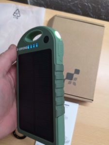 Da ich mich gerne und viel draußen aufhalte, war ich auf der Suche nach einem Ladegerät, was robust ist, wasserdicht und im Notfall auch über Sonnenenergie aufgeladen werden kann. Ich weiß, dass wenn man über Sonnenenergie auflädt, keine Wunder in Sachen Auflade Geschwindigkeit erwarten darf, da dies nur für Notfälle gedacht ist und je nachdem über Tage dauern kann. Dies werde ich beizeiten auch mal testen.