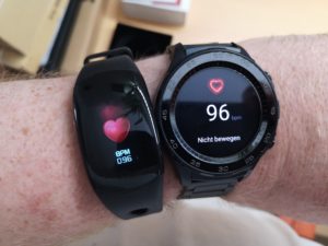 Das habe ich natürlich dann auch sofort gemacht, damit ich den Tracker ausgiebig testen kann. Ich habe den Tracker zum Teil mit meiner Smartwatch verglichen, um zu sehen, wie die beiden Uhren voneinander abweichen. Ich weiß, dass man bei einem Preisunterschied von ca. 250 Euro nicht wirklich vergleichen kann, aber es hat mich interessiert. Auch wird der Vergleich nicht in meine Bewertung hineinfließen, sondern dienen nur um zu sehen, wo die Unterschiede sind.
