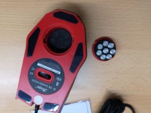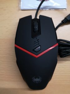 Eine Taste ist oben auf der Maus um die DPI Einstellungen zu verändern. Je nachdem welche Einstellung man wählt, ändert sich die Farbe der Maus. Da dies eine kabelgebundene Maus ist, braucht man sich über einen Akku wie bei einer Funkmaus keine Sorgen machen.