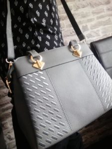 Da meine Freundin Schultertaschenträgerin ist, fand sie den Henkel ein bisschen zu kurz geraten. Ein abnehmbarer Schultergurt, der das Problem der kurzen Tragehenkel löst, wird mitgeliefert.