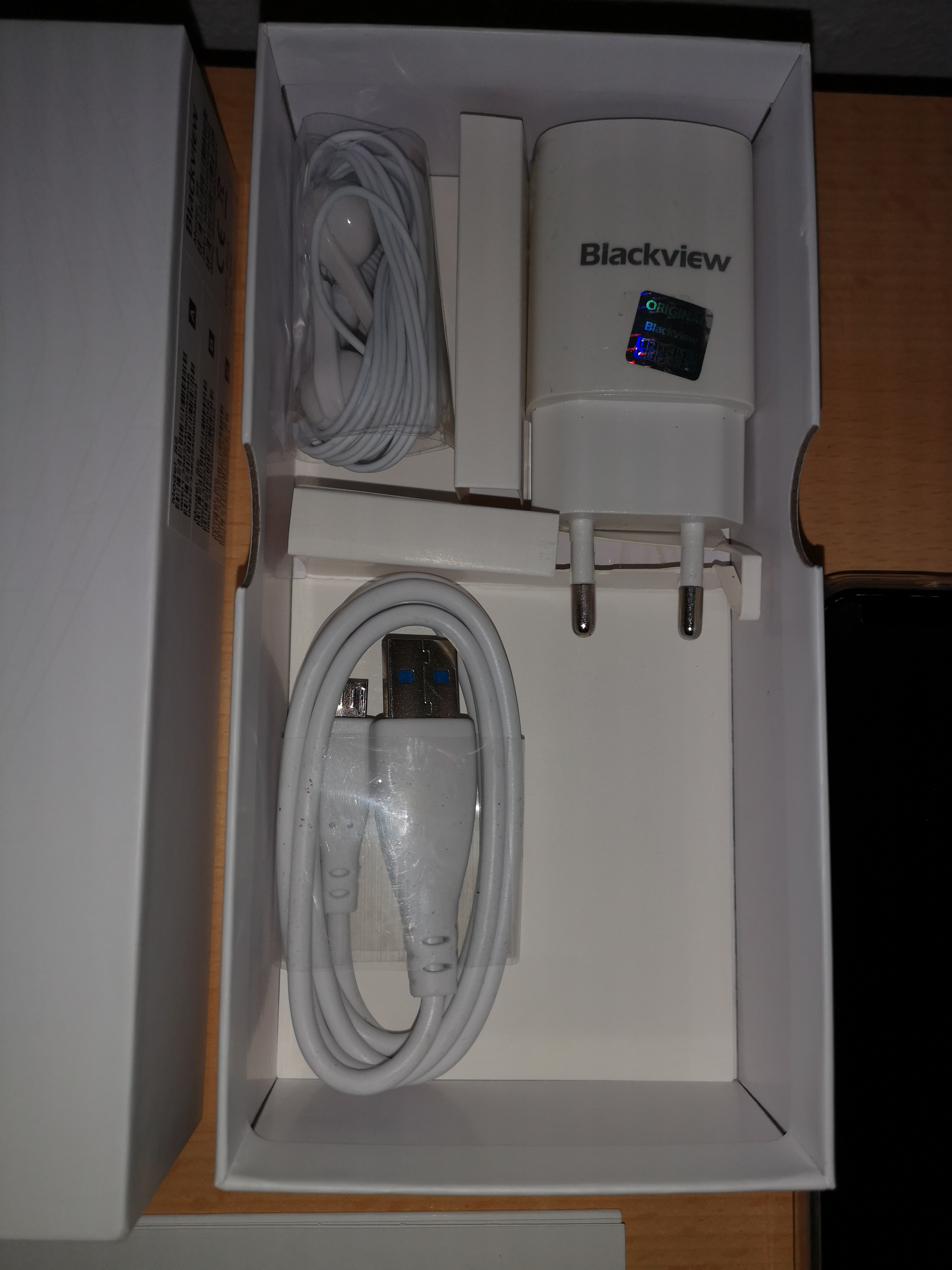 Geliefert wurde das Handy in einer weißen Verpackung, wo außer dem Handy noch eine zusätzliche Displayschutzfolie, ein Micro-USB Ladekabel, ein Kopfhörer sowie eine Handyschutzhülle und eine mehrsprachige Anleitung beiliegt.